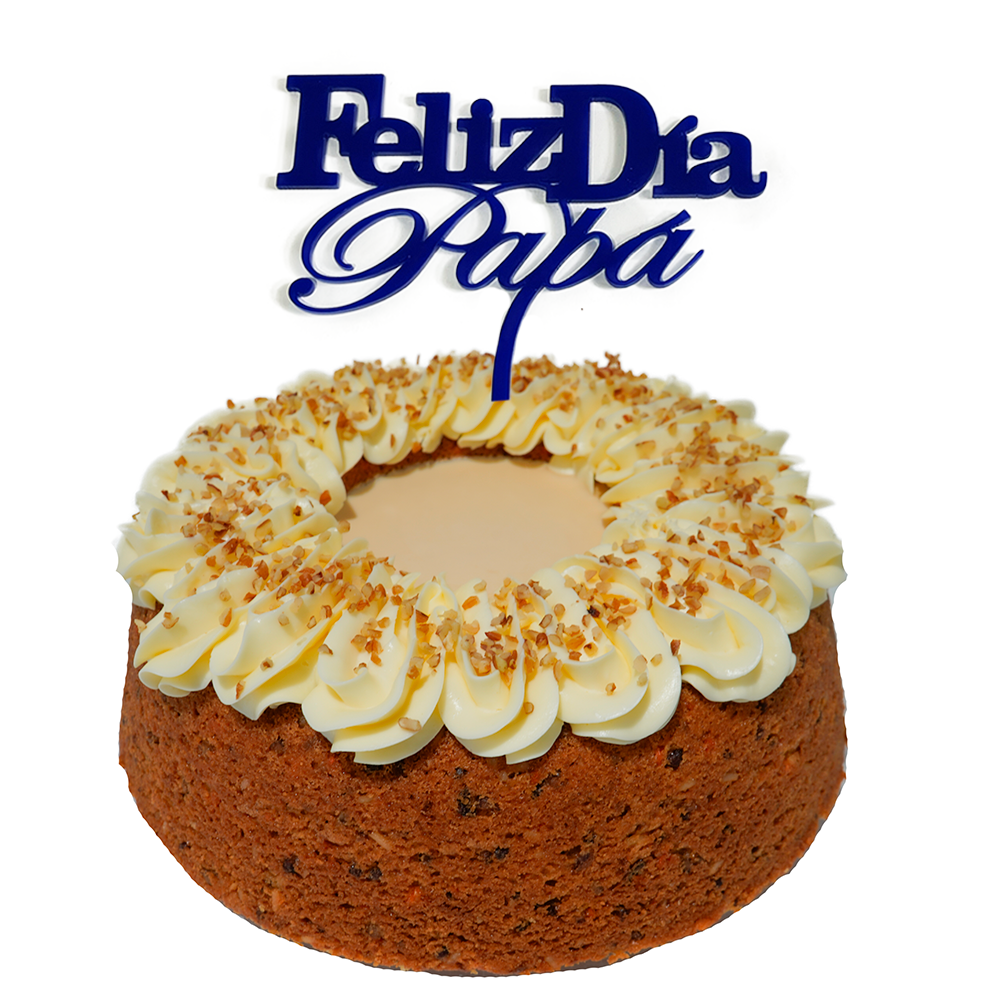 Delicioso y tradicional pastel de mantequilla elaborado con zanahoria, nuez, coco y canela, adornado con nuestro cremoso betún de mantequilla, trocitos de toffee y relleno de nuestra mezcla deliciosa de caramelo para chorrearlo a tu antojo.
